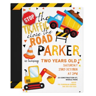 Celebrate your special day with this colorful Construction Birthday Party Invitation!