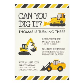 Celebrate your special day with this wonderful construction Birthday Party Invitation!!