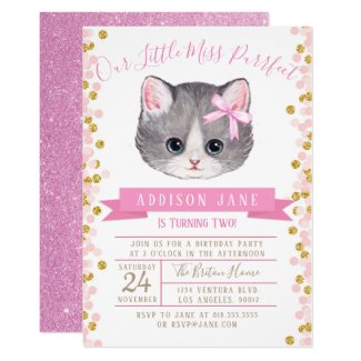 Celebrate your special day with this cute and pink Kitty Birthday Party Invitation!